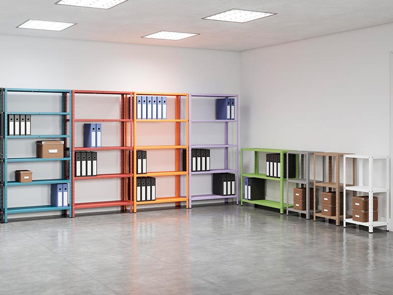 Estante de aço para arquivo morto. Cada estante tem medida de 2,00 A x 0,92 L x 0,40 P e pode vir na cor cinza cristal ou no colorido.