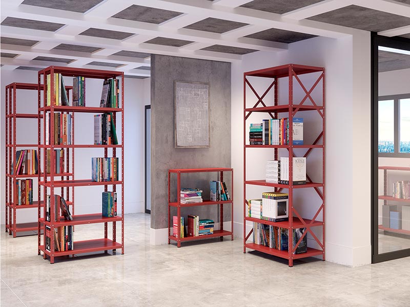 Estante de aço para biblioteca com 2,30 de altura. Ideal para escolas, bibliotecas, faculdades, etc. Pode vir na cor cinza cristal ou no colorido.