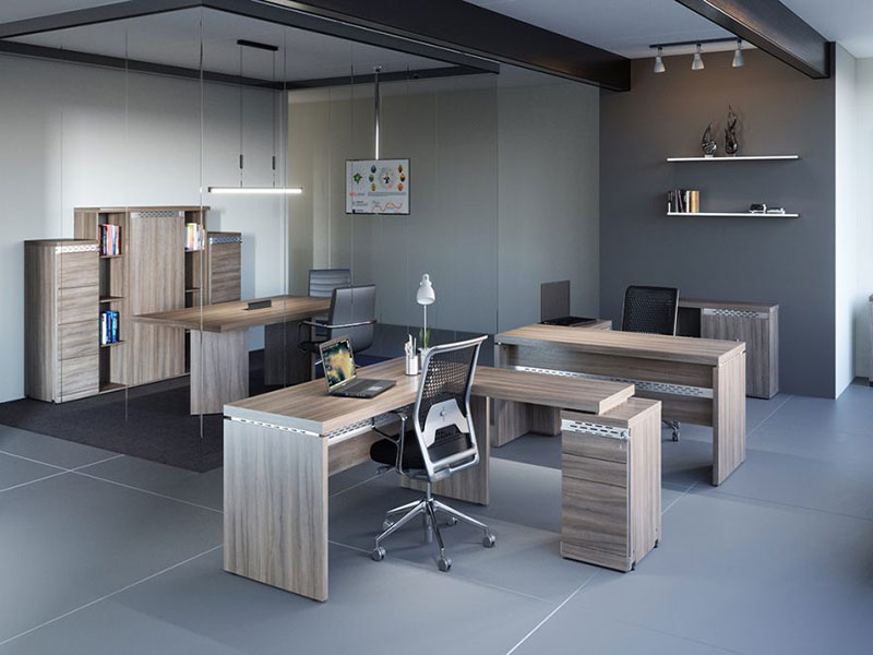 Esta mesa de trabalho é ideal para quem busca elegância e robustez em um móvel. Ela vem em L com mesa frontal de 1,60 ou 1,80 e mesa lateral com pé gaveteiro de 4 gavetas ou 2 gavetões para pasta suspensa. O tampo é encabeçado em 50mm com frisos em aço perfurado. Cores amadeiradas. Ideal para home office, gerência, presidência e consultórios.